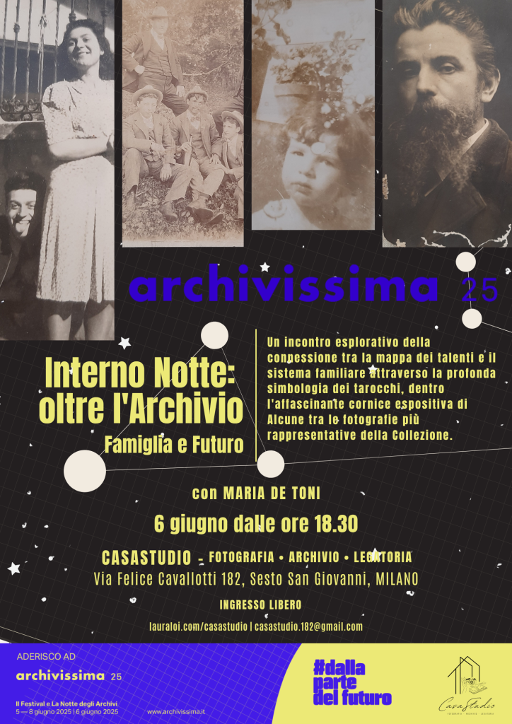 È nato così, da una mia iniziale collezione privata, Archivio CasaStudio, un fondo che conta, al momento, oltre 50.000 fototipi tra albumine, stampe cartonate, stampe in bianco e nero e colori, polaroid e diapositive kodachrome. Sono immagini abbandonate e recuperate che ritraggono volti, raccontano eventi, scene di vita quotidiana, viaggi, vacanze e sperimentazioni amatoriali; vanno dagli ultimi anni dell’800 ai primi anni del ‘900; dagli anni ’30, agli anni 2000, fino ad arrivare ai giorni nostri. Grazie alle continue acquisizioni e alle gentili donazioni, l’Archivio è in costante crescita. Partecipa, inoltre, con le sue immagini (concesse in prestito su richiesta) a importanti mostre e pubblicazioni.